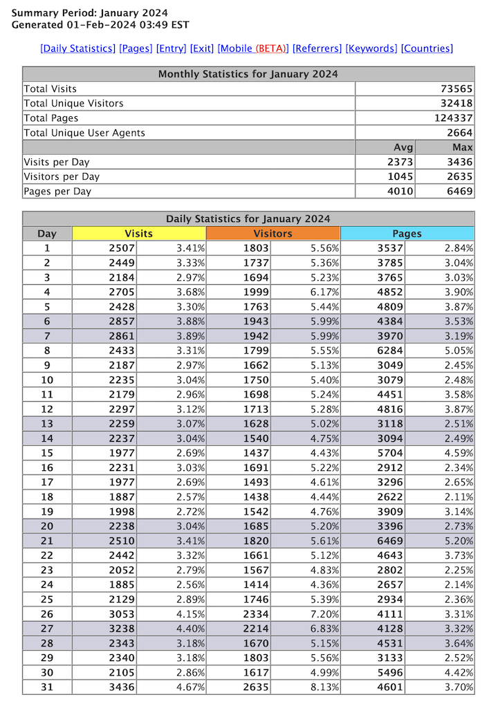 The charts above show daily traffic stat on this site as of Jan, 2024. We get an average of 120,000-150,000 page views per month.