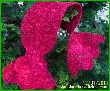 Free Knitting Patterns of feather and fan neck scarf, ribbed arm warmer, and ribbed scarf.