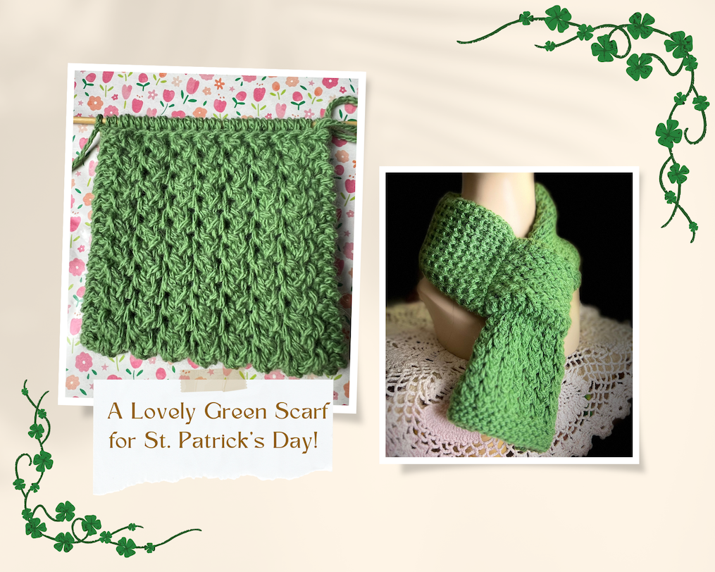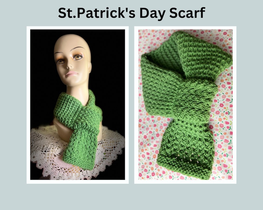 You can view or print this pattern at Googledoc.com at; Google Doc St. Patrick's Day Keyhole Scarf