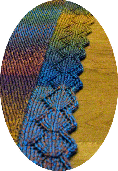 Here is the pattern for the shawlette with a leaf edging. Alternatively, You can just knit a straight scarf and add leaf edging on both sides.