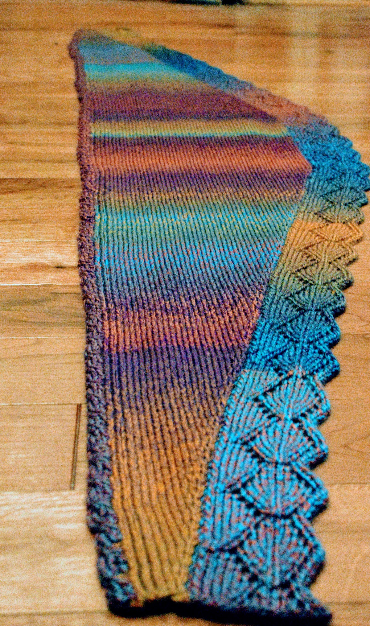 Shawlette size: 63 inches x 12 inches ( at the widest part)