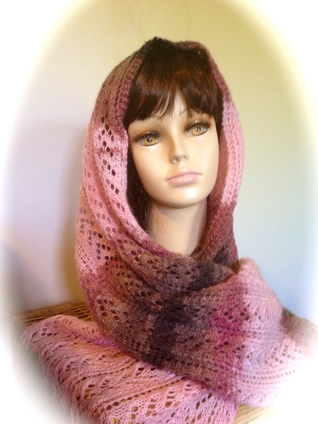 Description: This lovely lace scarf surely will make you feel beautiful and elegant. It would be a fabulous gift for someone special to you as well. The scarf can be worn in so many different ways such as a shoulder wrap, a head scarf or just simply hang it around your neck. The whole scarf is knitted with a little less than 2 balls of lace weigh yarn (less than 6 oz). The lace pattern is beautiful enough for experienced knitter and yet easy enough for new knitters to learn. The edging video tutorials are available to view if you ever needed help with the pattern. The body lace pattern has only 6 repeated rows. Once you get used to the pattern, you’ll automatically knit without every looking at the pattern. The edging is done separately and then stitch to each ends of the scarf.