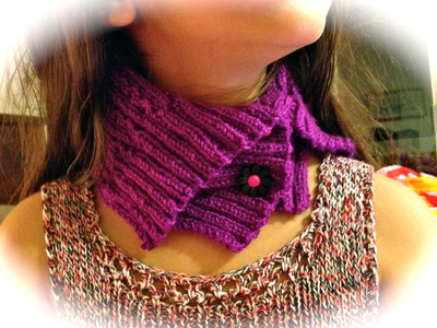 This cowl is not what I intended for it to be. It was suppose to be a blouse for my daughter. I started to work on the front section up to the armhole area. The piece got tug away for awhile because of my other projects. (I think you understand what I mean!) Then couple days ago, I went back to that piece to continue on. It turned out little bit smaller than I’d like it to be. I was sure that I measured and calculated my stitches pretty well. I have to blame it on my daughter on how fast she grows. Anyway, to make a story short, I figured a way to make use out of that piece I worked hard on it. I love the lace pattern and hate to throw it away. So, the “Accidental Crowl” was born as you can see.