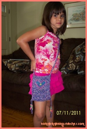 The first bag turned out good, but I wasn’t really happy with the way the beads looked at the tip of the heart. So, I added another row of bead to get a better look heart and the result was much better. Both of my girls just love their shoulder bags and have been wearing them around the house and out to dinners all the time.