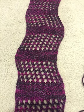 Make left slanted eyelet pattern for 12 rows; Repeat from *** 2 more times ending with a wrong side row.