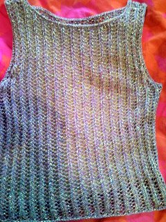 Faggotted Rib is one of my favorite rib stitch patterns. It reminds me of fish bone for some (obvious) reason. I don't particularly care much for its name though.I knitted a vintage camisole using faggotted rib pattern (see image below). I'm planning to add the pattern to my knitting pattern page. Come back again if you're interested in making this camisole.