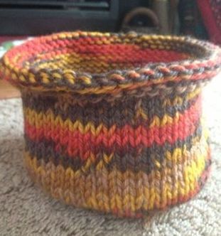 Description: A felted basket made out of 100% wool. It is knitted using circular needles and double strains of yarns. The felting process was done by washing the piece in a hot water in a washing machine.