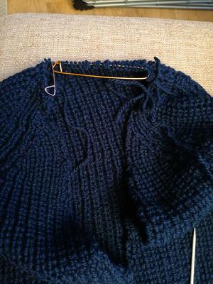 As you will see from pattern it asks me to knit 5 from safety pin( from where? I don't have 5) I've got the 11 from sleeves and 27 from back. I'm doing man's v neck cardigan with raglan sleeves. It a paton pattern 7681