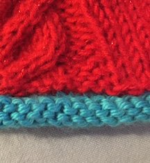 3. Knit hem stitches, fold and seam it at the back of work. This one involve a bit of hand sewing. My favorite one is to make the stockinette st hem with eyelets at the fold. You do this by;