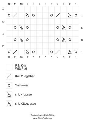 1st row. Yfwd, s1,k1,psso, k1,k2tog, yfwd, k1