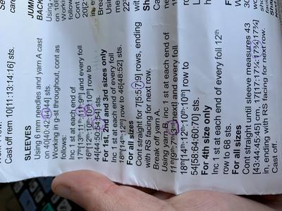 and then inc 1 st at each end of a row on the following 10 row. (in another word, knit 9 rows even and then inc on the next row). Repeat increase on every 10th row until you have 54 stitches.