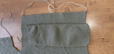 I am knitting a hooded jacket. I have completed the left front (with button holes) the back and one sleeve. This has been done as all in one piece. I am now knitting the right front.