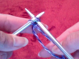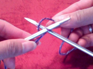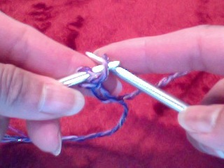 6. Slip the new stitch from right needle onto the left needle. Adjust and tighten the stitch.