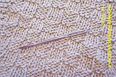 The label on the yarn will tell you that. (see how to read yarn's label in Knitting Yarns section). Try choosing yarn that is smooth in texture and not too slippery. Wool and cotton yarns are good choices in this respect. You'll be pulling and tucking stitches if choosing bumpy yarn. I discuss more about knitting yarns in a knitting yarn section.
