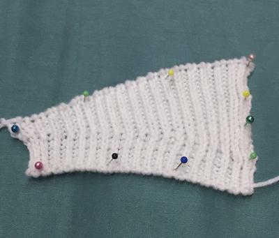 Work 6 rows more in rib working 4 stitches more before turning on next and every following alternate row