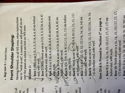 Please help! This is my first time learning how to knit a sweater. I got thru section 2. When continuing on section 3 do I knit over the W&T stitches? please help with section 3, please 🙏
