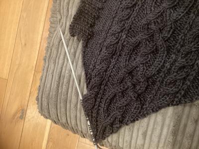 I’ve knitted the front borders where the buttons/ buttonholes are placed. Now I’m about to knit the shawl collar