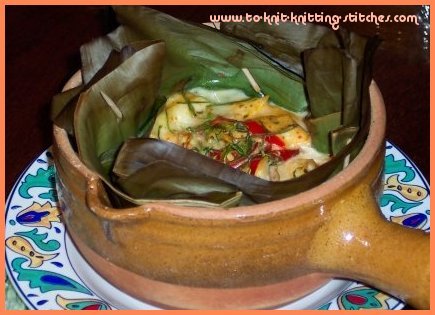 Thai Spiced Fish baked in banana leave-lining-clay pot