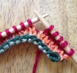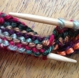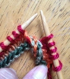 ![]() Here we're back on the normal working position again. Notice the twisting of the work between the needles? That's what we want it to look like. |