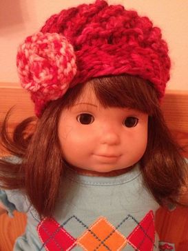 You can use the same pattern of the rose as below for the AG doll hat but make it a little shorter and using smaller needle.