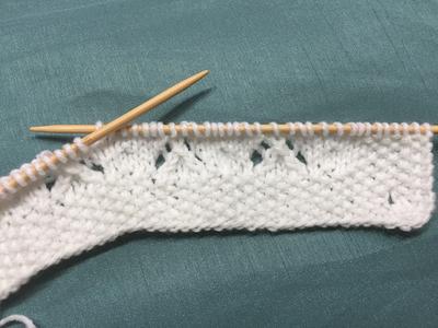 Work 8 more rows in pattern thus finishing at side edge. (then the pattern starts the decreasing for the armhole)